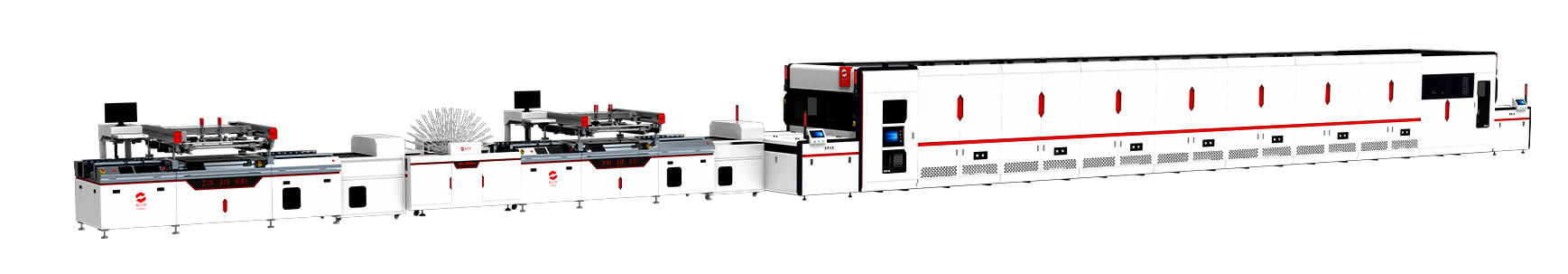 全自動阻焊三機(jī)連印生產(chǎn)線解決方案,實(shí)現(xiàn)PCB線路板塞孔、阻焊絲印機(jī)印刷、隧道爐烘干工藝制程智能全自動生產(chǎn),可節(jié)省人工5-7人,相比同行設(shè)備,日有效增產(chǎn)1000~2000片板,節(jié)能省電智能高效。